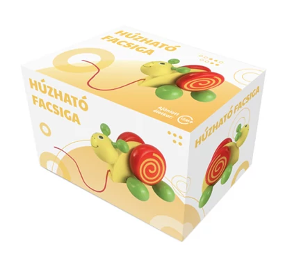 Fából készült, kerekeken guruló csiga, zsinórral lehet húzni. 2 éves kortól ajánlott játék.